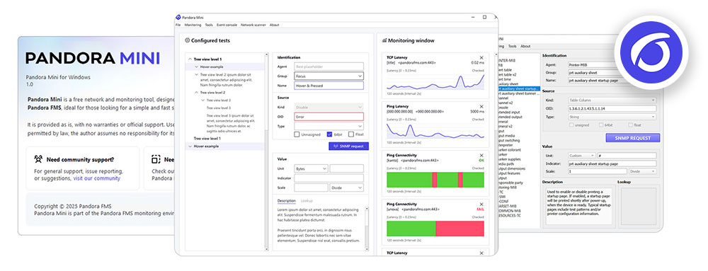 Pandora MINI, on the other hand, is a separate tool designed for desktop use and focused on basic remote monitoring tasks: connectivity, latency, web monitoring, network scanning, and interface checks. It has no limitations and is completely free.