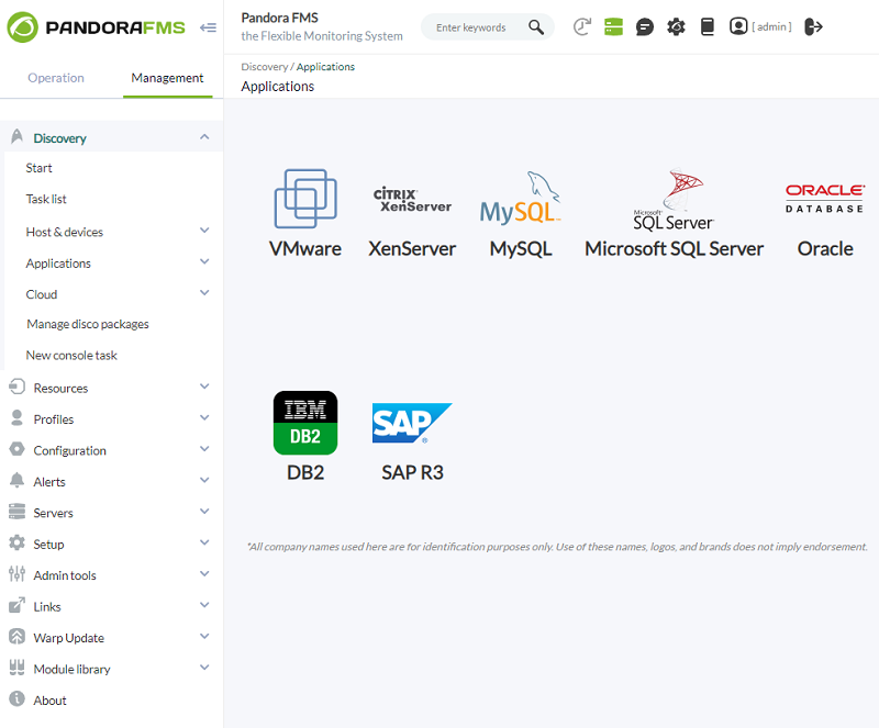 Las aplicaciones disponibles para monitorizar oficialmente con Pandora FMS son: