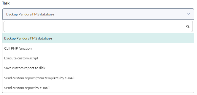 - Console Tasks: Incluye las herramientas necesarias para ejecutar tareas programadas desde la consola de Pandora FMS, tales como: - Respaldos de la base de datos de Pandora FMS. - Ejecutar funciones de PHP. - Ejecutar scripts personalizados. - Guardar informes personalizados. - Enviar informes personalizados (a partir de una plantilla) por correo. - Enviar informes personalizados por correo.