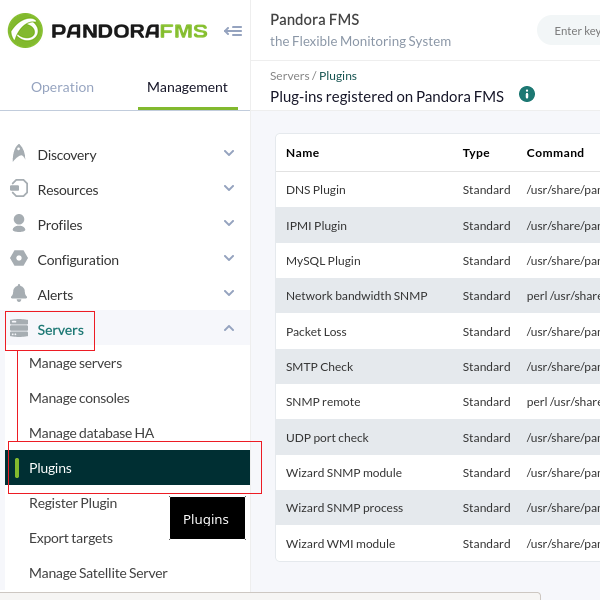 Types de plugins dans le Pandora FMS
