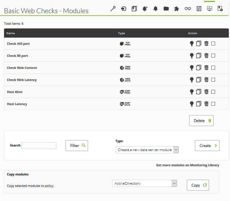 Эти модули создаются в политике, и при применении политики они также создаются в Агенте. Это обычные модули, созданные в политиках.