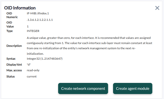 Pandora FMS travaille avec SNMP en gérant des OIDs individuels. Pour Pandora FMS, chaque OID est un module réseau.