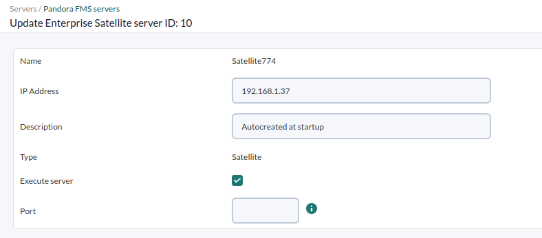 Cette option peut être configurée sur un PFMS Network Server et/ou un PFMS Satellite Server. Dans la liste des serveurs Pandora FMS, sélectionnez celui qui fonctionnera comme Exec Server et modifiez-le :